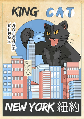 CatZilla surgit au crépuscule. King Cat observe, impassible.